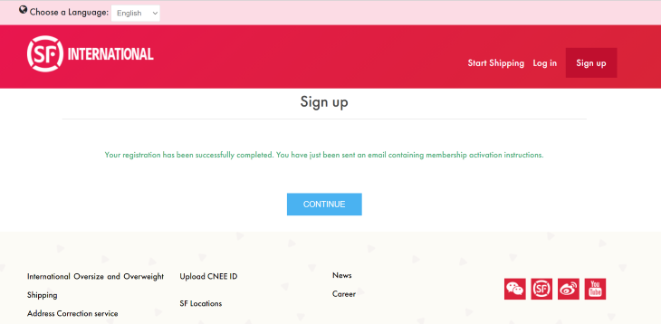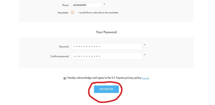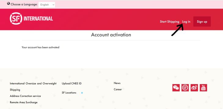 Customers will have to login/register an account on the SF International Online Order website to start a